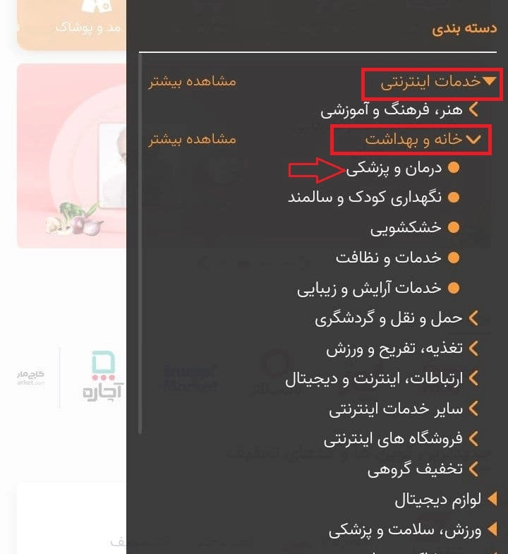 خیلی از افراد شاغل یا حتی خانه دار زمان کافی برای سپری کردن روش های فوق برای دریافت کد تخفیف داروکده را ندارند و به این فکر می کنند که چه جوری کد تخفیف دارو کده بگیریم در چند دقیقه؟ باید گفت که برای این افراد هم ما راهی داریم. به محض ورود به سایت تخفیف هات از بین تب های موجود در بالای صفحه کافیست روی تب خدمات اینترنتی و سپس درمان و پزشکی کلیک کنید.