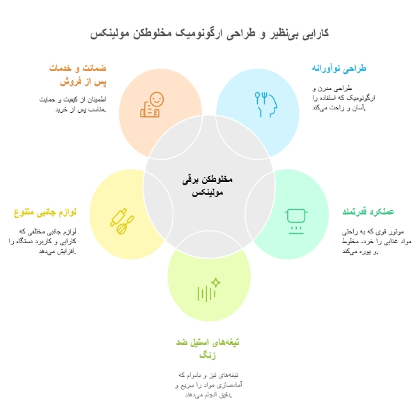 ویژگیهای کلیدی یک گوشتکوب برقی مولینکس چندکاره: