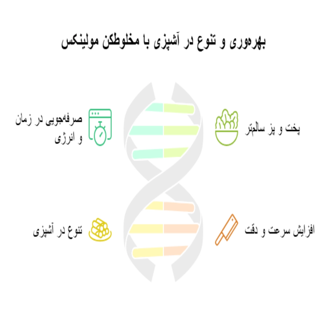 افزایش سرعت و دقت در آشپزی: با استفاده از این دستگاه، میتوانید مواد غذایی را با سرعت و دقت بیشتری خرد و مخلوط کنید.